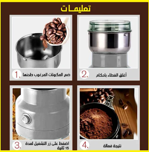 يجب أن تكون في كل بيت يمكنها طحن جميع أنواع المواد الغذائية المجففة القهوة والحبوب، المكسرات، الفاصوليا، الأرز، الذرة وغيرها