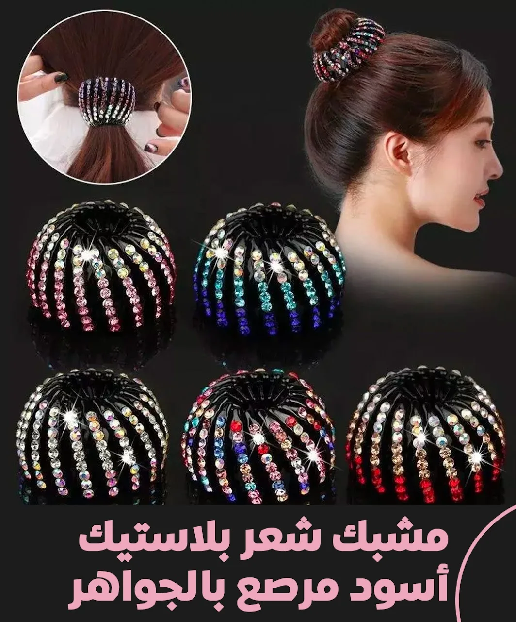 مشبك شعر بلاستيك أسود مرصع بالجواهر